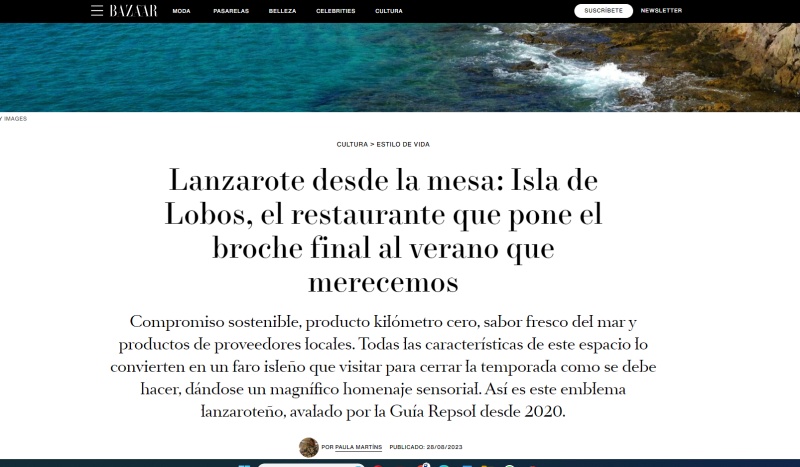 Harper’s Bazaar, revista de moda fundada en 1867 en Estados Unidos, dedica un artículo completo en su versión digital al emblemático restaurante lanzaroteño Isla de Lobos. Asegura que es el broche final del verano que merecemos y ensalza su “compromiso sostenible, el producto kilómetro cero, el sabor fresco del mar y productos de proveedores locales”, señalando además que está avalado por la Guía Repsol desde 2020.