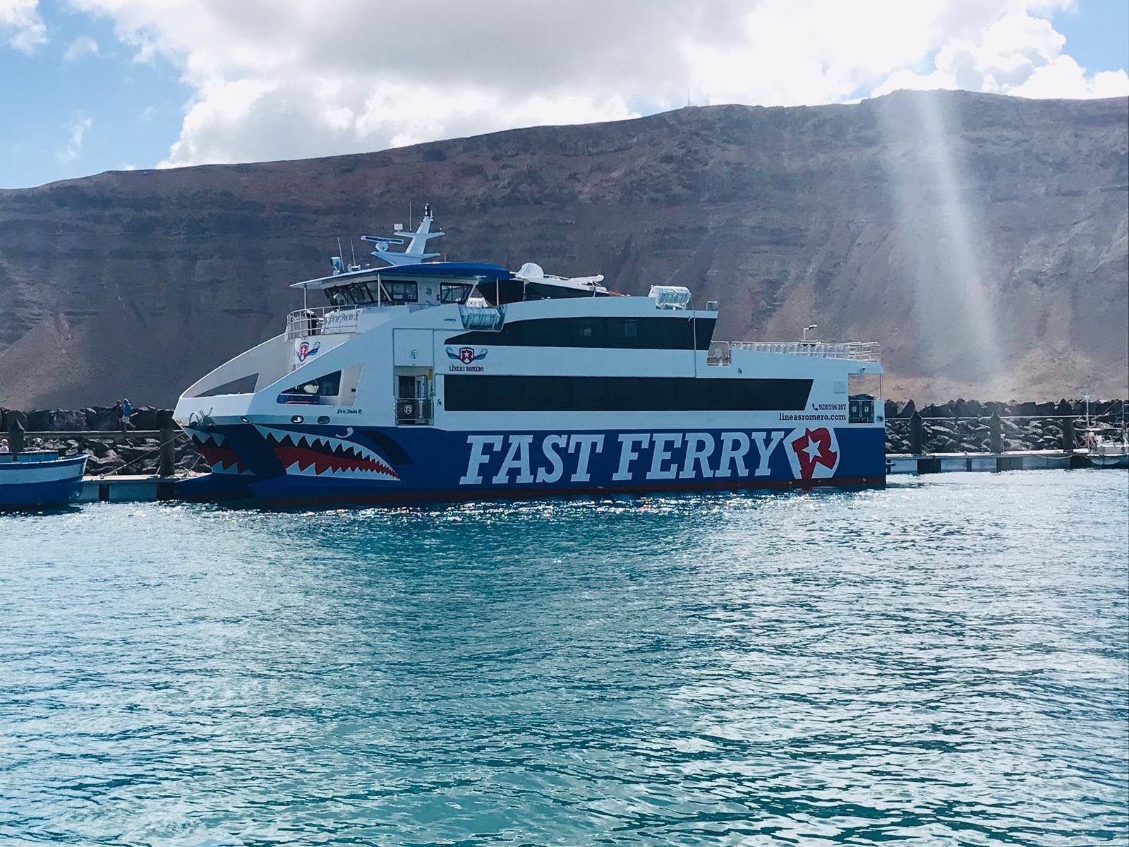 Caleta de Sebo, 2 de abril de 2019. Líneas Romero cuenta desde el pasado domingo, 31 de marzo, con el Don Juan, un nuevo catamarán de fibra de vidrio con el que cubrirá la ruta que une Fuerteventura y Lanzarote en tan sólo media hora. Así, la naviera sigue apostando por la innovación y amplía su flota con un barco que cuenta con capacidad para 340 pasajeros y unas modernas prestaciones.