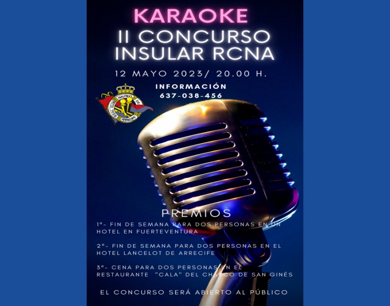 Repitiendo la satisfactoria experiencia del pasado año, el Real Club Náutico de Arrecife celebrará el viernes 12 de mayo, el “II Concurso Insular de Karaoke”. Las personas interesadas en participar deberán rellenar la inscripción en el RCNA.