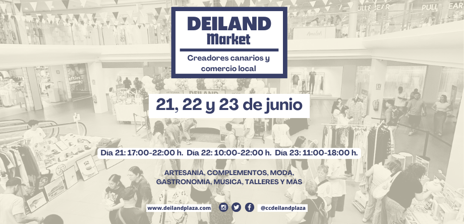 El Centro Comercial Deiland celebra del 21 al 23 de junio la segunda edición del Deiland Market. Se trata de un encuentro de creadores canarios y comercio local, que ofrece a quienes asistan productos de moda, artesanía, complementos, gastronomía, así como un diverso número de actividades.