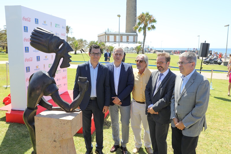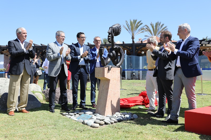 Asimismo, Pablo Rodríguez, vicepresidente y consejero de Obras Públicas del Gobierno de Canarias; Raúl García, consejero de Desarrollo Económico y Energía del Cabildo de Gran Canaria, y Marco Aurelio Pérez, alcalde de San Bartolomé de Tirajana, han procedido a la inauguración del monumento, que se sitúa en la Plaza del Faro de Maspalomas.
