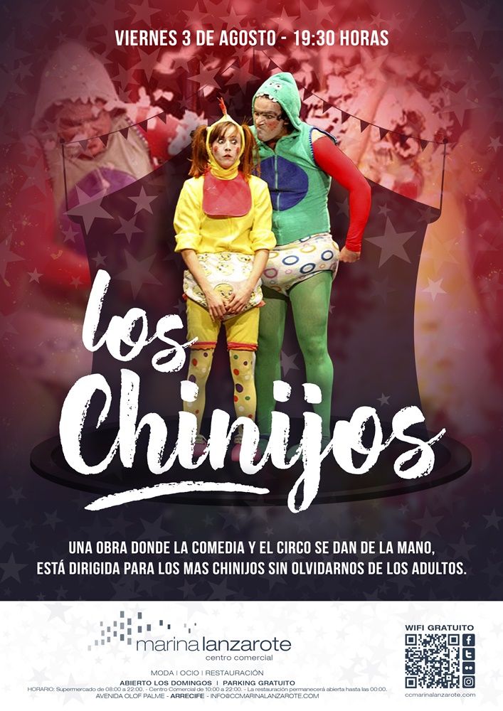 El espectáculo 'Los Chinijo' llega a Lanzarote para meterse en el bolsillo a chicos y grandes. El colorido y el buen hacer artístico será motivo de visita al centro comercial Marina Lanzarote este viernes 3 de agosto a las 19.30 horas.