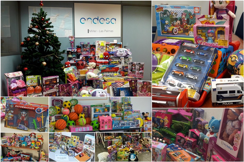 Los empleados de Endesa en Canarias han organizado un año más en el seno de la empresa una campaña solidaria de recolecta de juguetes, para hacer llegar los Reyes Magos a niños de familias económicamente vulnerables, superando en esta ocasión el millar de juguetes donados.