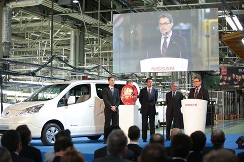 Nissan ha empezado la producción de su segundo vehículo 100% eléctrico, la nueva e-NV200, que estará disponible tanto como vehículo comercial ligero y como vehículo de pasajeros. La ceremonia contó con la presencia del presidente de la Generalitat de Catalunya, Artur Mas, a quien dio la bienvenida el vicepresidente ejecutivo de Nissan Motor Limited, Andy Palmer.
