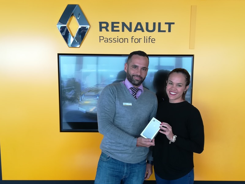 Miriam Padrón Cabrera, compradora de un Renault Clio durante el pasado mes de noviembre, resultó ganadora del 6º iPhone 7 de 256 GB sorteado por la empresa Juan Toledo con motivo de su 50º Aniversario.