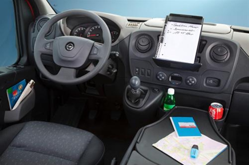 En el interior del Movano, un nuevo espejo convexo de gran tamaño en el parasol del pasajero mejora la visibilidad alrededor. Este se puede inclinar a una posición que permite al conductor ver también la zona de ángulo muerto en el lado derecho del vehículo, de manera que los riesgos que se acercan se pueden observar con la debida antelación. Los conductores del Movano también disfrutarán de una mayor comodidad cuando se utiliza la cabina como una oficina con el CD de los sistemas de infoentretenimiento 16 BT USB, Bluetooth y doble conexión USB de serie, y el CD 16 BT DAB USB, con la recepción de radio digital DAB (Digital Audio Broadcast).