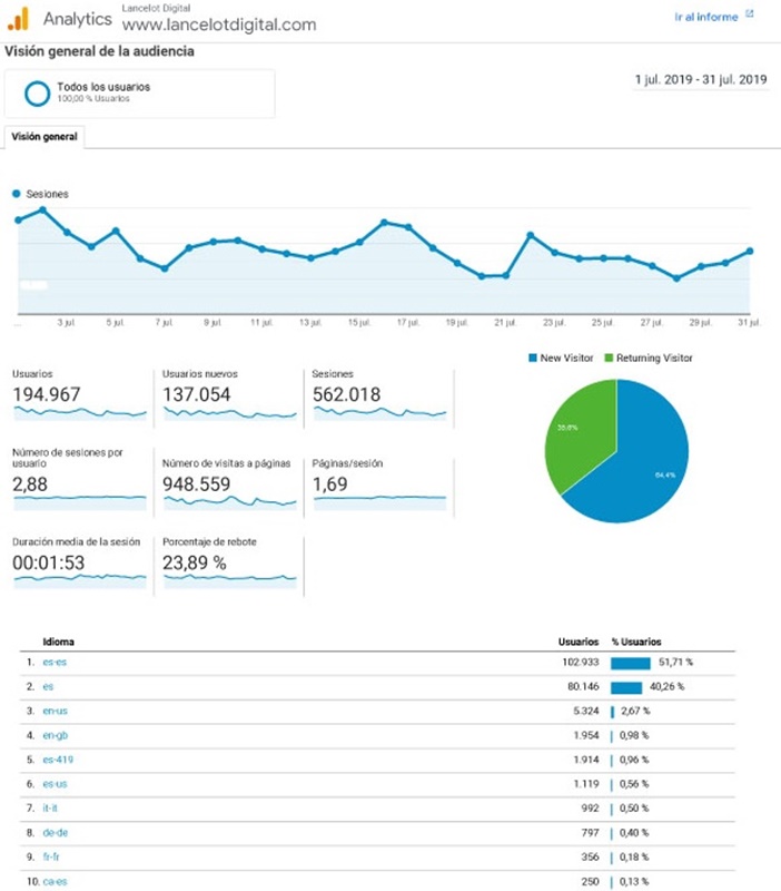 LancelotDigital.com sigue batiendo récords de visitas y consolidándose como el digital de Lanzarote de mayor crecimiento en los últimos años. El pasado mes de julio tuvo 562.018 visitas, con casi 19.000 visitas diarias de media, batiendo su propio récord mensual que se había establecido el pasado mes de enero con 561.657 visitas.