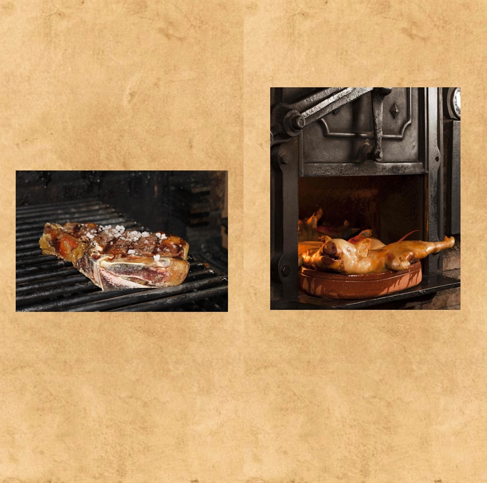 El Asador de Castilla le propone probar auténticos productos castellanos como la morcilla de Burgos, chorizo y cecina de León, queso de Valladolid, pimientos asados de Navarra...