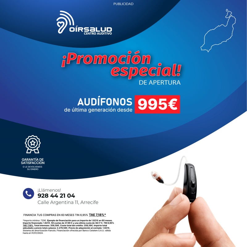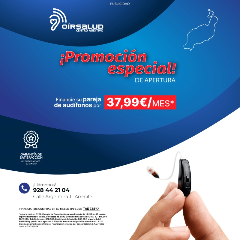Oír Salud Centros Auditivos abre su primera clínica en Lanzarote. Este centro, especializado en audiología y audioprótesis. Abierto desde el año 2018 en la isla majorera, se instala en la calle Argentina número 11 de Arrecife, con una gran promoción de apertura.