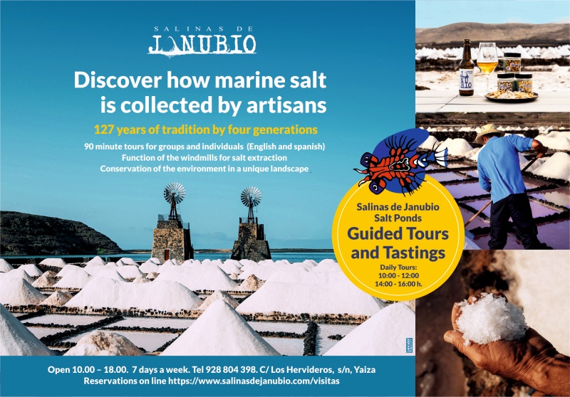 “Te enseñaremos desde los cocederos hasta la extracción de forma artesanal y manual, como se elaboraba antiguamente. Una visita única a pie, que no te dejará indiferente. Te adentrarás en su historia familiar, conocerás su trazado hidráulico, sus molinos, su arquitectura, pero sobre todo, te enamorarás de sus valores paisajísticos, etnográficos y medio ambientales”, explican los organizadores. “Somos la única salina de todas las Islas Canarias que ha seguido en activo ininterrumpidamente. Desde nuestros orígenes hasta hoy, con más de 127 años de trabajo y esfuerzo, seguimos transmitiendo la tradición de generación en generación”.