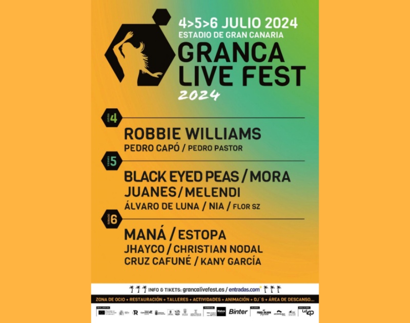 El cantante británico Robbie Williams encabezará el Granca Live Fest el jueves 4 de julio en el Estadio de Gran Canaria, en Las Palmas de Gran Canaria. Con más de ochenta y cinco millones de discos vendidos a nivel mundial, la estrella del pop se incorpora al cartel de la tercera edición del festival canario protagonizando la fecha más significativa del ciclo a principios del mes de julio.