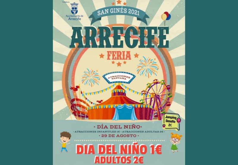 Los niños y los no tan niños tendrán una nueva jornada especial el próximo domingo 29 de agosto en la feria de Arrecife, ya que para celebrar el Día del Niño los menores pagarán por las atracciones infantiles un único euro y los adultos pagarán dos euros por las de adultos.