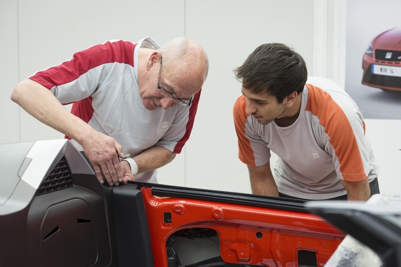 Ante la mirada atenta de los aprendices, Guerrero explica que a la hora de fabricar un prototipo "el taller es como un quirófano: aunque el láser y la tecnología son nuestros grandes aliados, al final lo que cuenta son las manos del cirujano" para lograr el éxito de la operación, asegura. A su lado, Marc Estapé, que está cursando segundo de Mecanizado en la Escuela de Aprendices de SEAT, valora de forma muy positiva haber aprendido de la mano de estos veteranos. "Nos han enseñado cosas que no sabíamos", asegura. "La fabricación de un prototipo no tiene nada que ver con un vehículo de serie, el coche casi se fabrica pieza por pieza y hay partes que se hacen manualmente", añade.