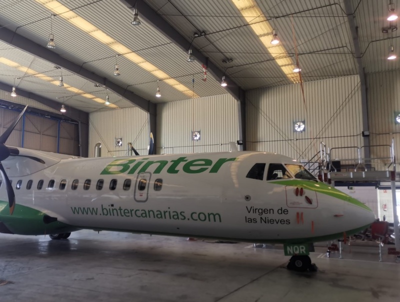 Binter ha recibido una nueva aeronave, modelo ATR 72-600, para incorporar a su flota de aviones turbohélice, que se llamará 'Virgen de las Nieves', como homenaje a la patrona de la isla de La Palma.