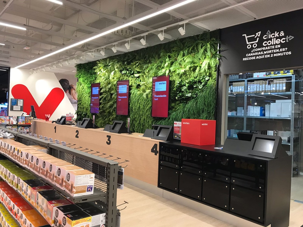 Worten 7 Palmas también sigue la estrategia de la compañía por apostar la omnicanalidad. Gracias a las pantallas y soportes digitales con los que cuenta, permite acceder a todo el surtido de la compañía de más de 20.000 productos a través de la tienda online canarias.worten.es. También, pone a disposición de todos los habitantes de la localidad y cercanos a ella el punto de recogida Click & Collect, permitiendo a los clientes hacer su pedido online y elegir dónde y cuándo quieren recoger el artículo seleccionado.