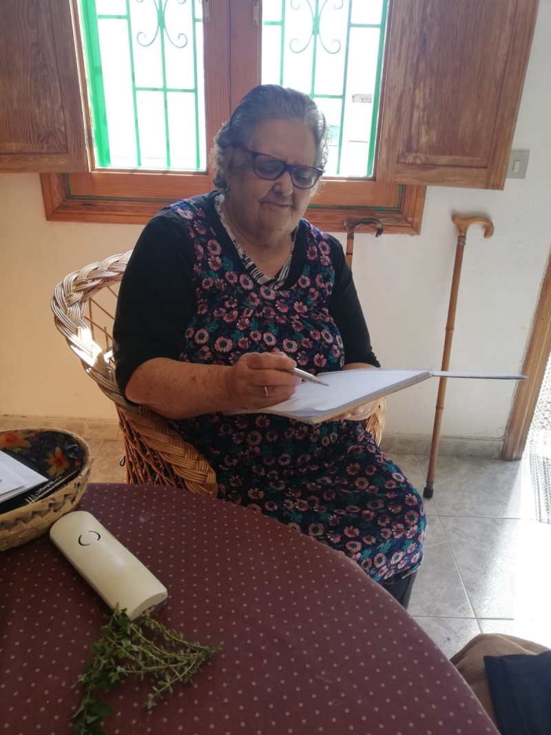 Fue fácil entrar en aquella casa achatada de Órzola: rodeada de un jardín delicioso con geranios rojos y desteñidos, con esa aureola rosa en el borde de las hojas, y en el suelo, apostadas contra el muro blanco que rodea la vivienda, varias pencas alargadas, voluminosas, tímidas. Detrás de las ventanas pintadas de verde apareció la figura de Vicenta. Sonriente, amable, dispuesta a charlar con la visitante ocasional, y así, después de una hora larga que pareció tan corta han seguido otras charlas por teléfono. Y siempre al otro lado, la voz de Vicenta era capaz de mantener una de esas conversaciones amenas, distintas, salpicadas con esas historias curiosas que vivió o que alguien le contó.