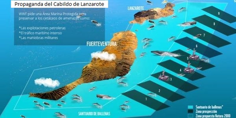 Desde hace unos 12 años CC viene hablando a medias acerca de reclamar las aguas marítimas que le podrían corresponder a Canarias, pero con más ímpetu y confusamente en estos casi cuatro últimos por el conflicto petrolífero que hemos discernido y que nos ha educado a varios respecto la Ley del Mar, etc. Y ahora que según parece Repsol abandonó para siempre las 9 cuadriculas donde poseía y posee licencias para prospeccionar, sondear y extraer crudo y/o gas si lo hubiese hallado, o si se hallara más adelante; CC y nueve partidos más de toda España (PSOE, IU, PNV, CiU, Bildu, UPyD, Iniciativa per Catalunya, ERC, Ciudadanos y Compromís), a los que se ha sumado la parlamentaria portuguesa Marisa Matías; todos orquestados por la Oficina de Acción Global del Cabildo de Lanzarote que es quien se encarga de hipnotizar a la ciudadanía con sus relatos manipulados y de larga duración que usan como cebo para pescar votantes incautos; decidieron y presentaron hace unos días, una propuesta ante la Comisión del Parlamento Europeo solicitándole que declare la zona petrolífera canaria como santuario para todo tipo de cetáceos que transitan de Norte a Sur entre la parte Este de Lanzarote y Fuerteventura y la costa africana, (digo yo):”donde llegados a los caladeros situados en aguas marroquíes y saharauis, dichas especies de animales toman alimentos durante varios días para luego proseguir su viaje de emigración hacia otros destinos marítimo distantes de nuestro archipiélago”.