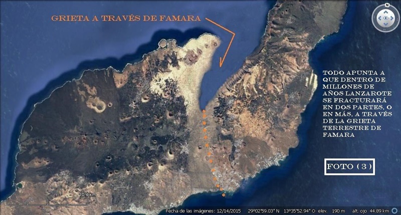Esta explicación que doy está basada en informar en que si los continentes siguen expandiéndose, como así se aprecia que seguirán, Lanzarote que tuvo al Archipiélago Chinijo unido en la parte de Soo Famara, según corran millones de años, la isla se fracturará a través de dicho lugar pasando la grieta por Arrecife y convirtiendo la actual ínsula en varias porciones de tierra, y también las restantes islas canarias se alejarán unas de otras, y posiblemente algunas de nuestras actuales 8 islas se hundirán totalmente o parte de alguna, y hasta es probable que nazcan nuevas.