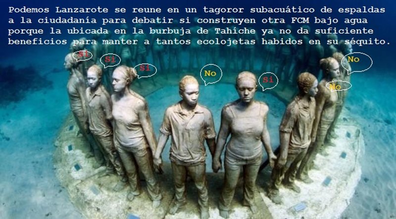 Podemos y NC se han unido contra el Museo Subacuático que tiene en marcha el Cabildo de Lanzarote. Estos partidos políticos son unos aprovechados que se nombran a sí mismos mesías en río revuelto que, abogan y pretenden falsamente proteger todo cuanto a ellos les dé votos de los incautos que creen sus falsas reivindicaciones.
