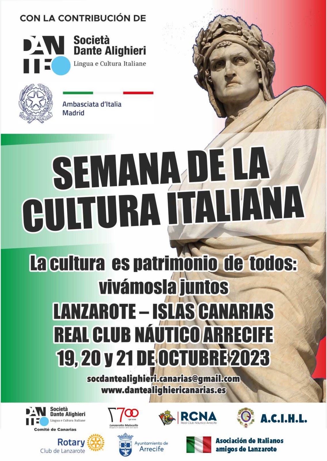 El Comité de las Islas Canarias de la Sociedad Dante Alighieri (una de las instituciones culturales italianas más antiguas y prestigiosas, fundada en 1889 como entidad moral con aproximadamente 500 comités en todo el mundo, con el propósito de difundir la lengua y la cultura italianas en el mundo), presidido por el Abogado Alfonso Licata, propone y organiza, por primera vez en la isla de Lanzarote en el Archipiélago Canario, una iniciativa de gran alcance e interés socio-cultural, denominada "SEMANA DE LA CULTURA ITALIANA", bajo el lema "La cultura es de todos, vivámosla juntos".