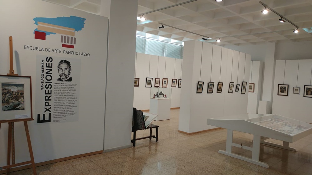 La Escuela de Arte Pancho Lasso acoge desde el pasado 20 de septiembre una exposición dedicada al que fuera durante más de treinta años profesor de esta institución, Santiago Alemán. En ella se puede encontrar un amplio registro de formatos y técnicas: de la forma gráfica al volumen. Y todo ello recorriendo varias décadas, lo cual casi suena a antología o retrospectiva, si no fuera porque la coherencia narrativa es de un presente muy rotundo.