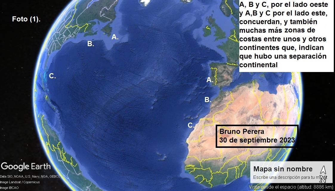 Hace unos cuatro años mientras repasaba y estudiaba con Google Earth la teoría de Pangea (del griego= Todo-tierra, o la "Tierra Entera) que según científicos existió hace unos 200 millones de años y que comenzó a disgregarse después de esos años, cual deriva continental ha dado pie a la separación de los continentes, Norte América, Centroamérica América, Sudamérica y la Antártida. Por una parte, hacia el oeste y sur, y por la otra hacia el este, a Europa y África.