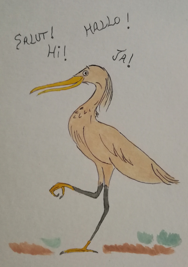 ¡Un ave políglota! Una vecina políglota que habla a la perfección francés, inglés, y alemán y que ustedes pueden encontrar por las orillas de Pocillos murmurando sola:
