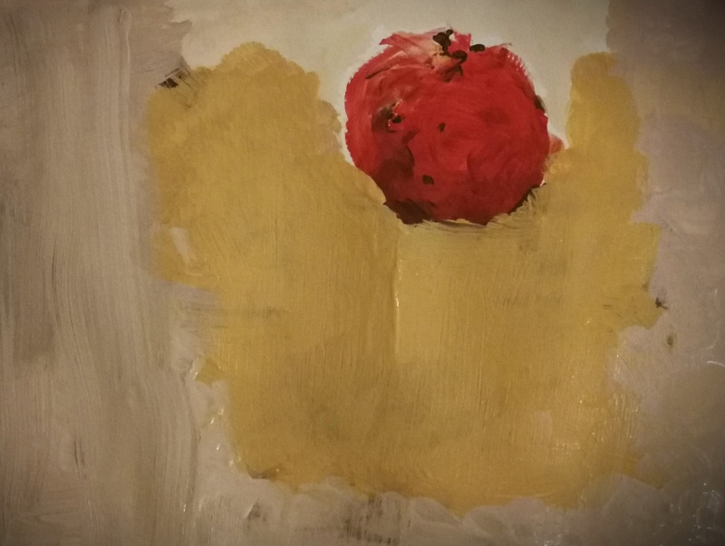 Finalmente se adormece en la madera horizontal de un caballete en un estudio de pintura. Se observa a sí misma en bodegón. Suceso mágico y fusión veloz. Ha cambiado de dimensiones para siempre. ¡Mágico fenómeno artístico que funde realidad y ficción!