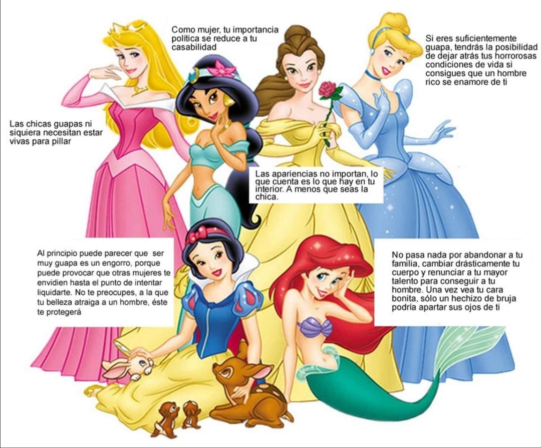 No nos equivoquemos que aquellas tiernas películas de la infancia son de todo menos un cuento de hadas. Si la Cenicienta nos dejó claro que, si te callas, limpias bien y centras tus preocupaciones en estar siempre mona, las posibilidades de dar el ‘braguetazo’ de tu vida son más que factibles; la Sirenita mandó otro mensaje claro: renuncia absolutamente a todo (incluso a que tu voz pueda ser escuchada) por unas bonitas piernas para adaptarte a las condiciones vitales que te ofrezca ‘el amor de tu vida’. Y qué decir de la "idílica" relación entre Bella y Bestia que empezó cuando ella fue secuestrada en casa de aquel energúmeno con claros problemas de personalidad y violento a más no poder al que, con su magia de princesa Disney, terminó por cambiar. ¿Qué bonito?