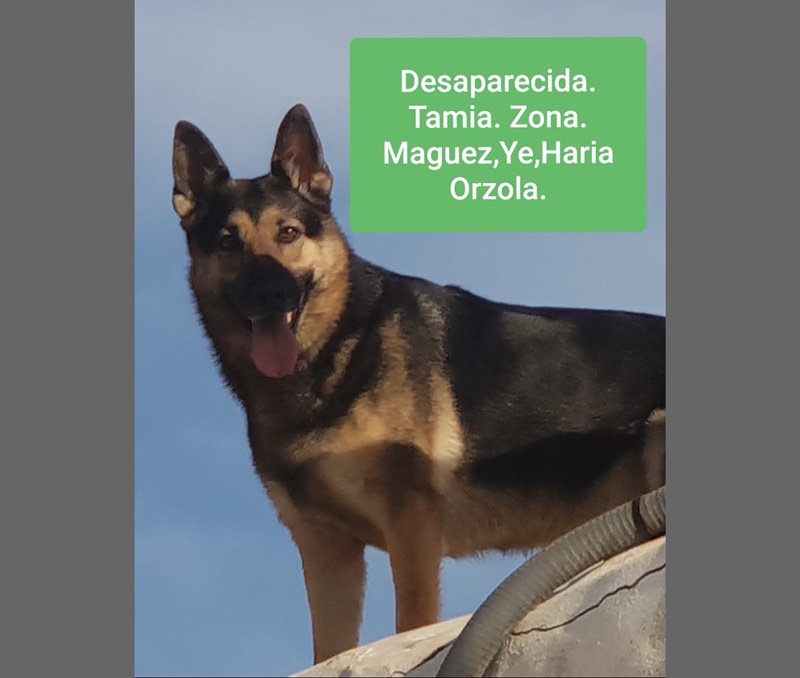 La pastor alemán Tamia desaparecía en la mañana de este lunes, hacia las 6:00 horas, debido a la fuerte lluvia que la asustó y la llevó a escapar de su casa.