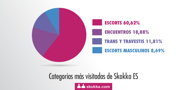 No sería sorprendente que la búsqueda de la categoría escorts gane el primer lugar con el 60,62%, ya que es sin duda la categoría más buscada en Skokka, el líder de la industria.