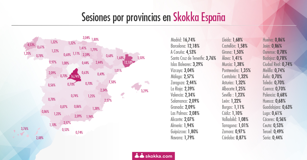 Skokka llegó y se quedó en cada uno de los países donde abrió sus puertas. La magnitud territorial de España se combinó perfectamente con el deseo del gigante de los clasificados de expandirse. Actualmente, está presente en 51 de las 63 ciudades de la península, siendo líder en los motores de búsqueda y una referencia en el mercado para adultos.