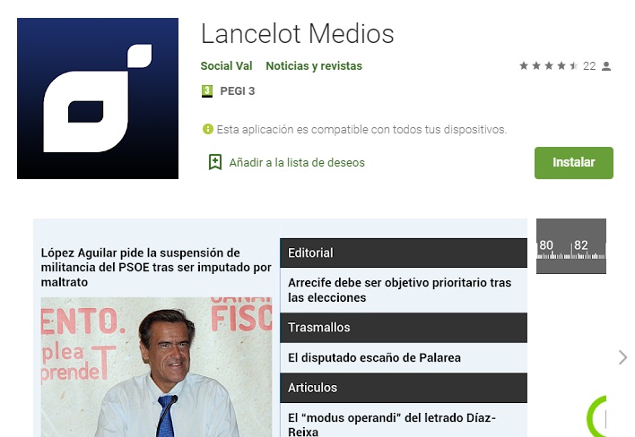 También encontrarán el Play Store la APP gratuita del Grupo Lancelot Medios en donde encontrarán todos los canales del grupo. A día de hoy Lancelot cuenta con 2 diales (Lancelot Radio 90.2 FM y Radio Marca Lanzarote 104.5 FM), una televisión (Lancelot Televisión) y dos portales digitales (www.lancelotdigital.com y www.radiomarcalanzarote.com) además de la publicación mensual de la casa que podrán descargar en un banner que encontrarán en la página principal del portal.