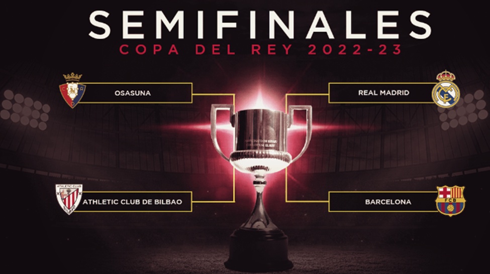 Los tres clubes más coperos, Barça, Athletic y Madrid, y un Osasuna que va en búsqueda de la segunda final de Copa de su historia, se batirán en semifinales. El objetivo último está al sur de la península, en el Estadio de La Cartuja de Sevilla, sede de la gran final que tendrá lugar el 6 de mayo.