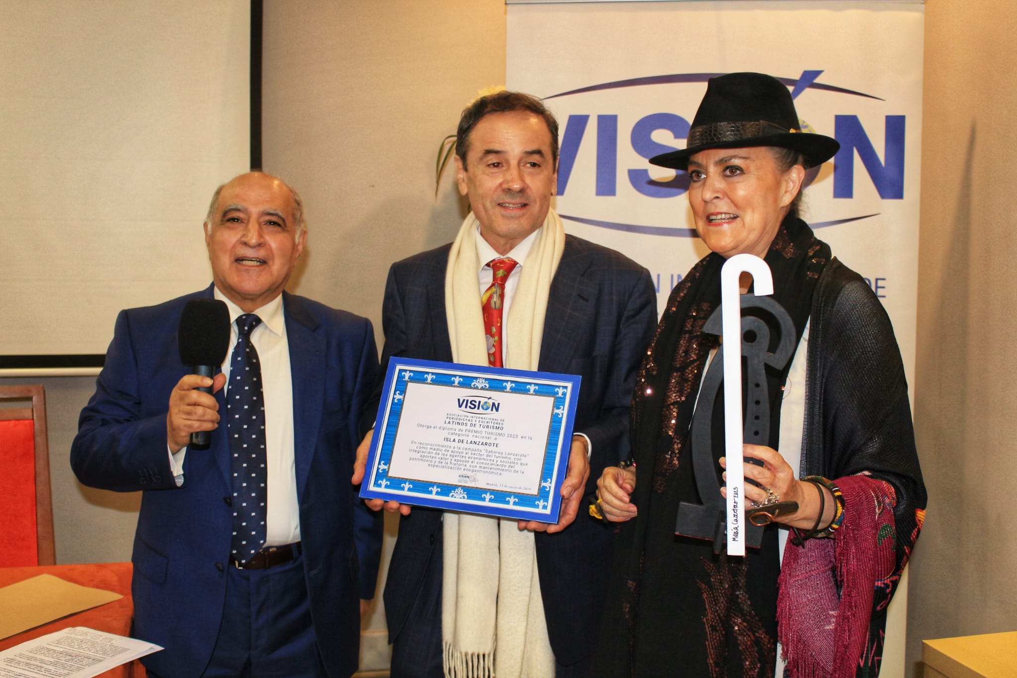 El Consejero de los Centros de Arte, Cultura y Turismo de Lanzarote, Ángel Vázquez, habló desde un vídeo proyectado, sintiendo mucho no poder asistir personalmente al acto, y delegando así en Domingo de Famara, para recogerlo en nombre de la Isla de Lanzarote. Agradeciendo a VISIÓN, el premio otorgado a la Isla de Lanzarote, y manifestando que todo el esfuerzo, que se está realizando a nivel nacional e internacional, para promocionar los Centros, permite conocer Lanzarote a través de su cultura y gastronomía, y que ya está dando sus frutos como por ejemplo al recibir este galardón. Así mismo felicitó a los otros dos premiados como Jordania y Ciudad de México. A continuación, se proyectó un vídeo de Saborea Lanzarote.
