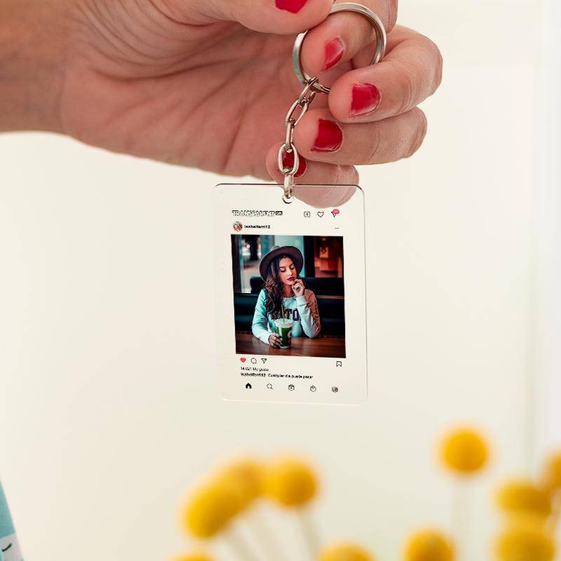 Instagram es la red social por excelencia en el siglo XXI y un regalo original puede ser regalar vuestros mejores momentos de una forma muy original. Este llavero imita una publicación de Instagram en la que tú podrás elegir la fotografía que quieres que aparezca, el pie de foto, el nombre de usuario e incluso el número de likes que te apetece que tenga.