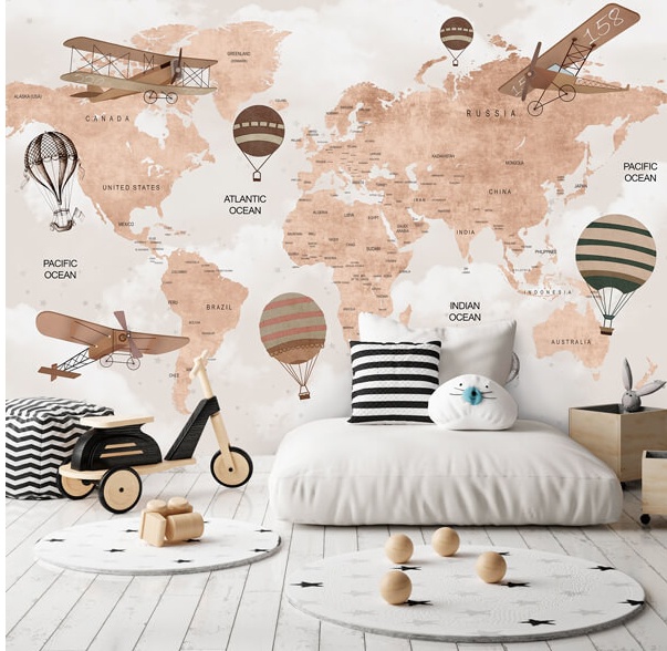 Enseñar geografía es más dinámico con este fotomural juvenil del mapamundi.