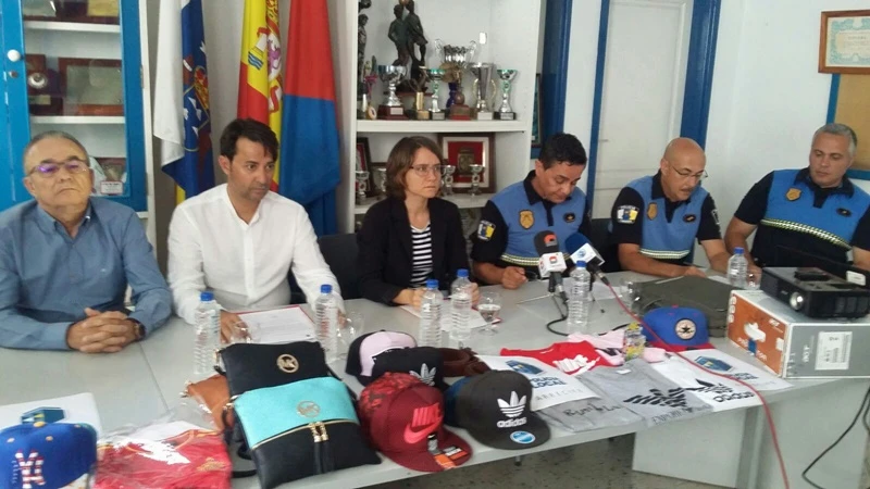 En la rueda de prensa han estado presentes el oficial de la Policía Local que ha llevado a cabo la operación, Miguel Hernández, el jefe de la Policía Local José Antonio Lasso, el perito judicial y adscrito a la Comisión Antipiratería del Ministerio de Cultura del Gobierno de España, Miguel Bolaños Melián, la alcaldesa del Ayuntamiento de Arrecife, Eva de Anta, y el concejal de la Policía Local, David Duarte.