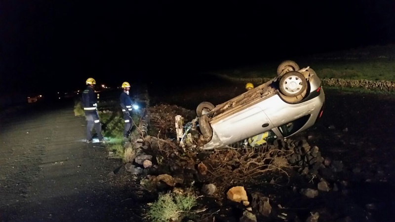 Un coche volcó en la tarde de este lunes en la carretera de El Peñón, cerca de La Vegueta.