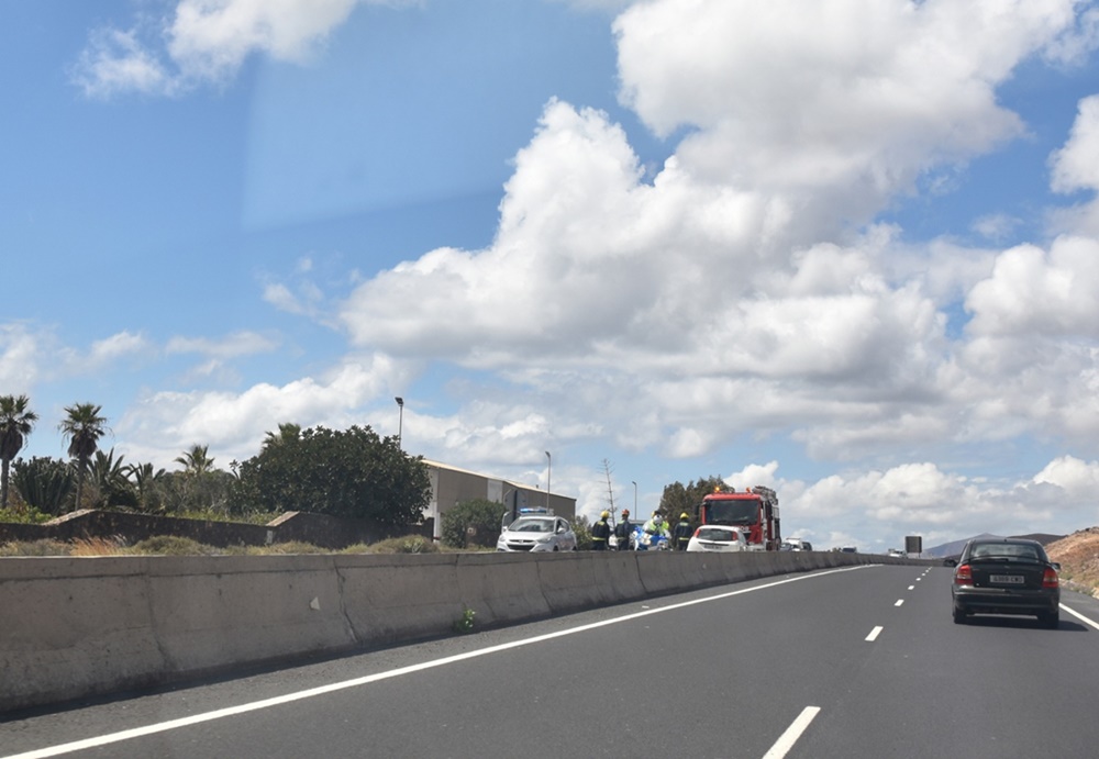 Un vehículo sufrió un accidente este mediodía sobre las 13.30 horas en la LZ-2, carretera que conecta el pueblo de Tías con Arrecife, a la altura de la machacadora.