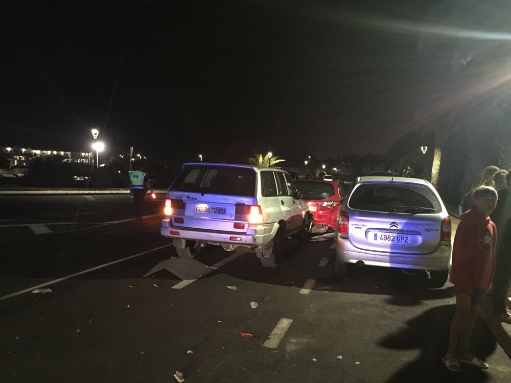 Dos coches chocaron sobre las 22.30 horas de ayer miércoles, en La Avenida de Las Palmeras de Costa Teguise. Según fuentes cercanas la medios, ambos ocupantes tuvieron que ser atendidos por los servicios sanitarios de emergencia, quedándose atrapada, incluso, una de las ocupantes en su coche.
