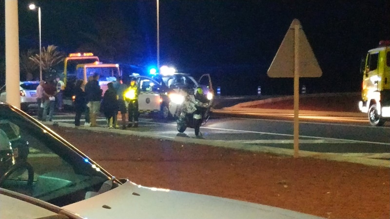Un aparatoso accidente de tráfico se producía en la noche de este miércoles en la carretera del sur, camino de Yaiza, concretamente a la altura de la gasolinera Combustible Canarias.