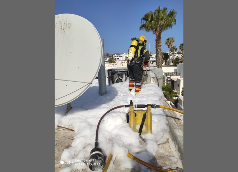 En total se utilizó un extintor de Polvo polivalente, un extintor de espuma, ½ litro de espumógeno y 100 L. agua.