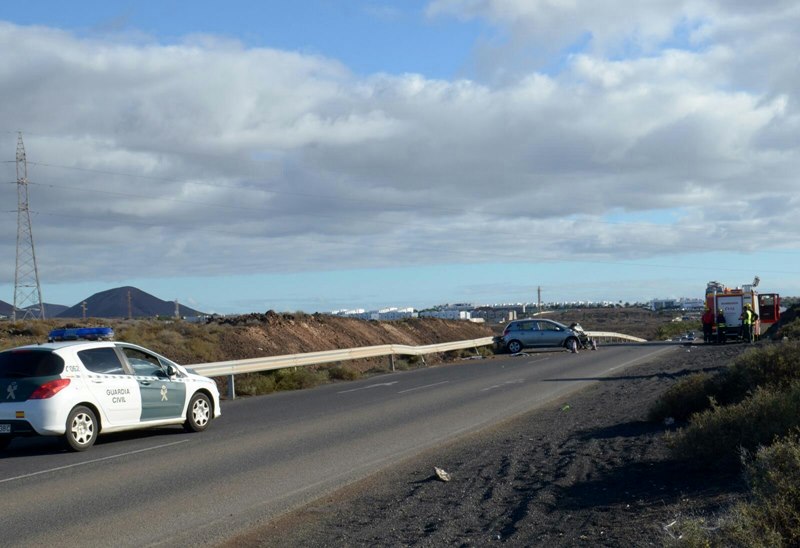 Aparatoso accidente en la entrada a Costa Teguise desde Arrecife