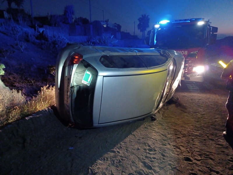 Los Bomberos atendían en la madrugada del lunes un vuelco en la carretera de Puerto del Carmen a Puerto Calero.