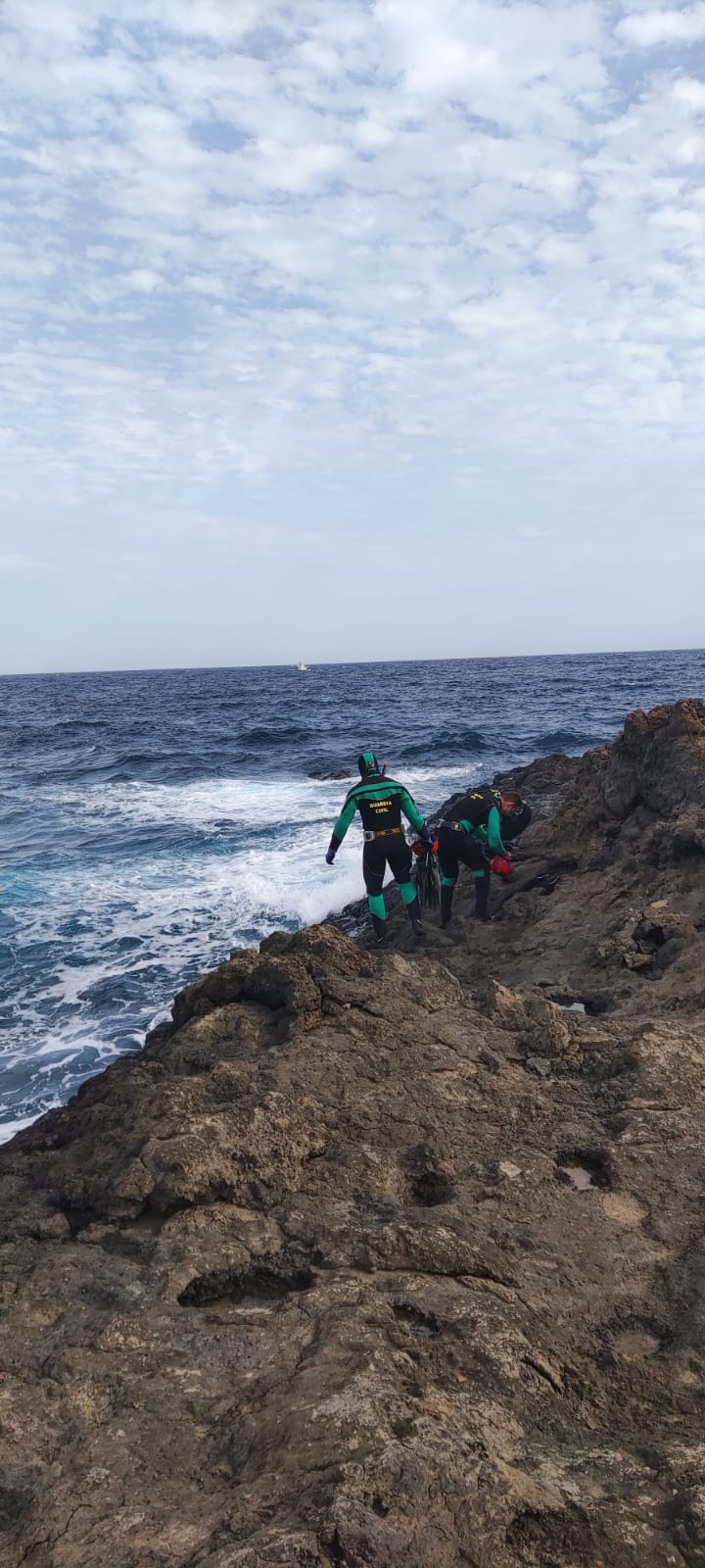 Finalmente no hubo final feliz y los Geas de la Guardia Civil han hallado el cuerpo del hombre que trató de recuperar un fardo de lo que aparentemente era droga en el Charco del Palo. Lo han localizado en la misma zona en que desapareció.