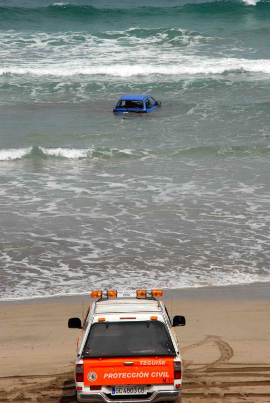 Un coche turismo apareció en la mañana de este sábado mar adentro, semisumergido, en la localidad de Caleta de Famara, en cercanías de la zona de El Rincón, al final de la playa de Famara. Si bien en un primer momento cundió la alarma por la posibilidad de que hubiera alguien dentro del mismo, se comprobó que estaba vacío.