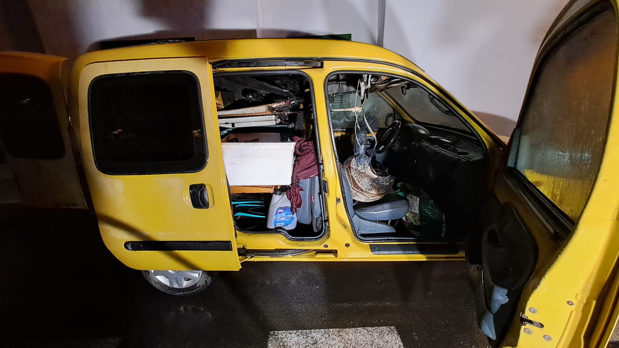 Al llegar comprobaron que se estaba quemando un vehículo, concretamente el fuego se había iniciado en el interior y afectaba a los sillones delanteros, techo y enseres personales.