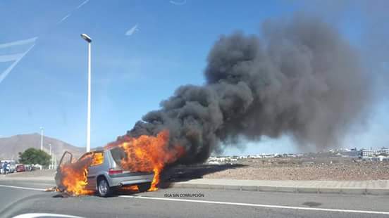 Los conductores que transitaban en la tarde de ayer por la carretera de acceso a Playa Blanca se llevaron un buen susto al ver cómo un vehículo ardía en llamas con su conductora aun en el interior. El fuego, que pudo tener su origen en un fallo del motor, fue sofocado por los bomberos del Consorcio de Seguridad y Emergencias de Lanzarote que se personaron en la zona.