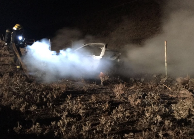 Bomberos del Consorcio de Seguridad y Emergencias acudieron en la madrugada de este lunes a extinguir un incendio de un vehículo en Tabayesco (Haría).